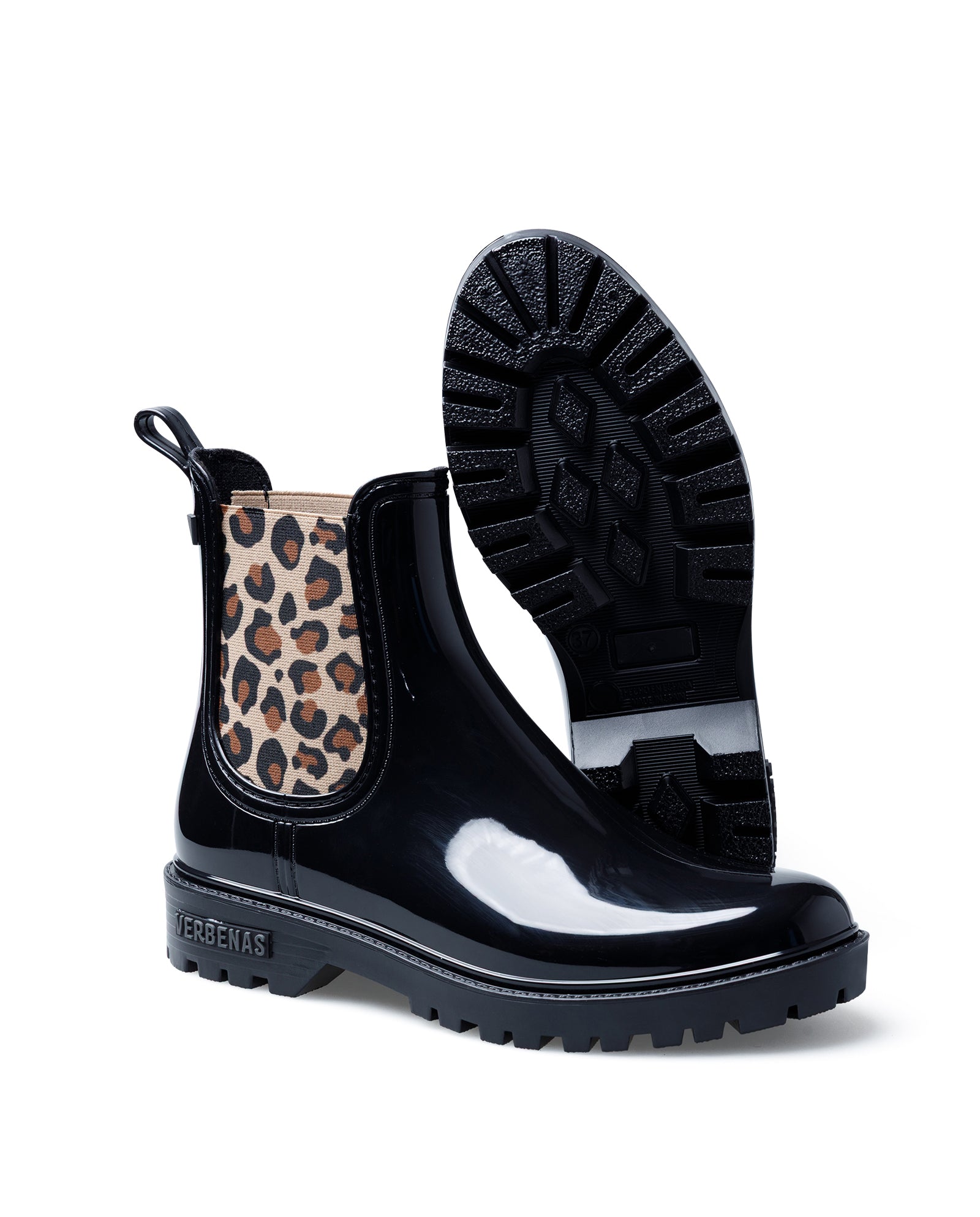 Botas Agua Gaudi Brillo Animal Negro-Leopardo