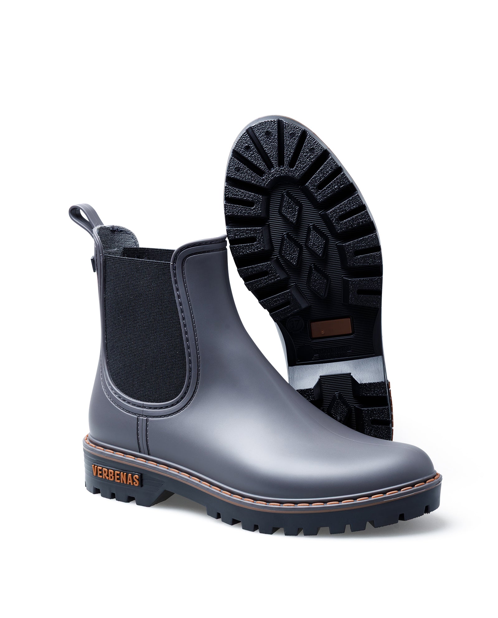 Bota de Agua Gaudí Countryside en color Negro. Confeccionadas con corte sintético. forro y planta textil y suela de goma. Altura caña de la bota: 14 cm. Incorpora una suela dentada y costuras simuladas como señas de identidad Fusiona la sofisticación londinense con el encanto natural de la campiña inglesa.Tonos terrosos combinados con suela negra que aportan versatilidad, convirtiéndola en la opción perfecta tanto para recorrer la ciudad como para escapadas en clave rural.