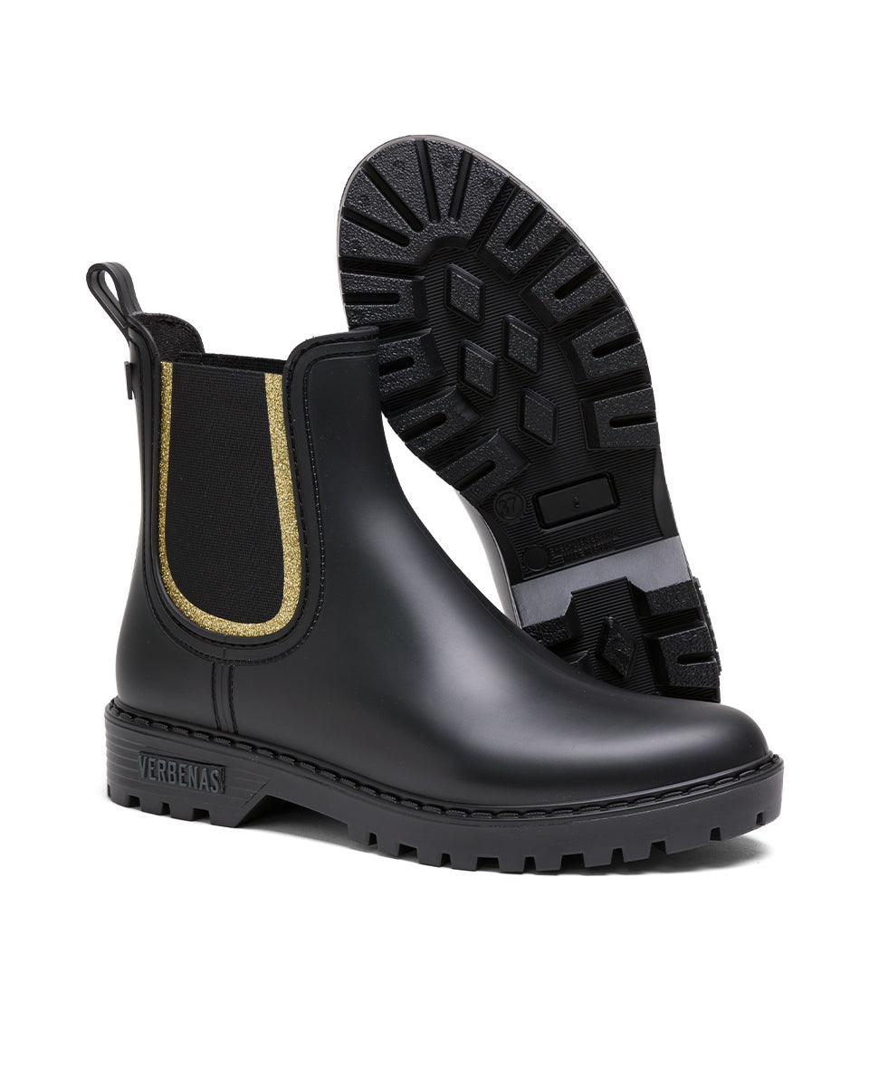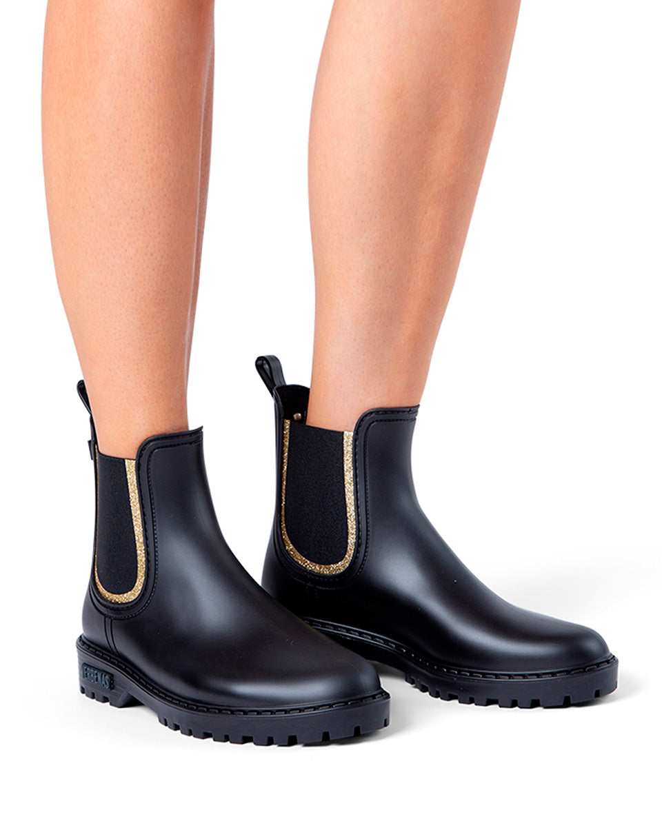 Botas Agua Gaudi Mate Glitter Negro-Oro