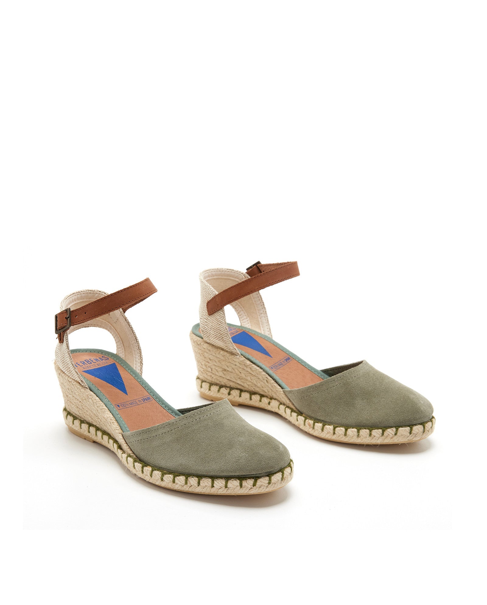 Espadrilles mit Keil Malena Serraje in Bosco Farbe. Hergestellt aus Wildleder, Futter und Sohle aus Leder, Jute und Gummisohle. Höhe des Keils 5,5 cm. Hergestellt in Spanien. Malena ist der kultige Keilabsatz von Verbenas. Seine Jute-Naht und sein Keil verbinden sich mit den Wurzeln des Meeres und des Landes, während sein natürliches Material das Erbe der Handwerker ehrt. Das Modell Malena versetzt Sie mit jedem Schritt in laue Sommerabende, in denen Moderne und Tradition aufeinandertreffen.