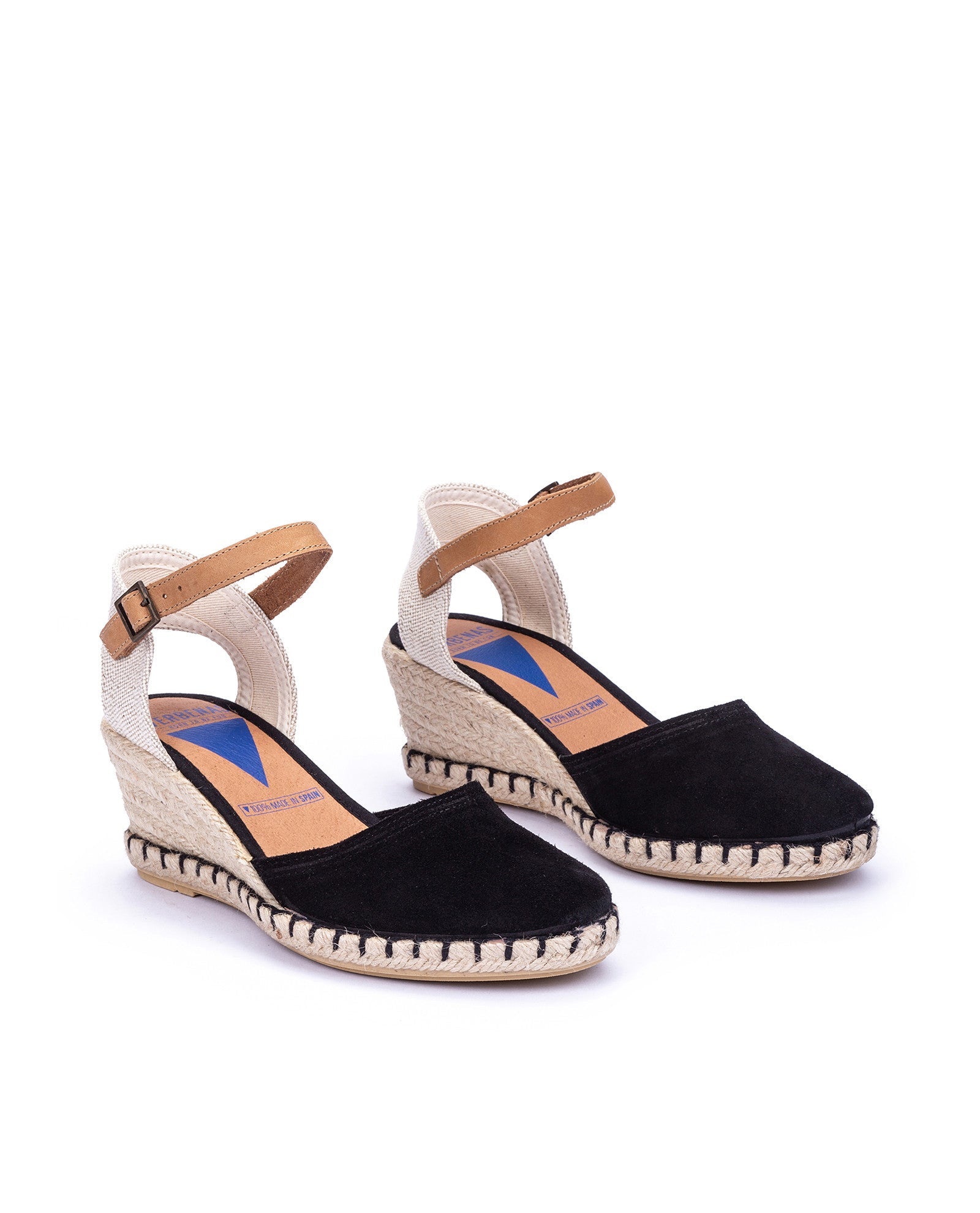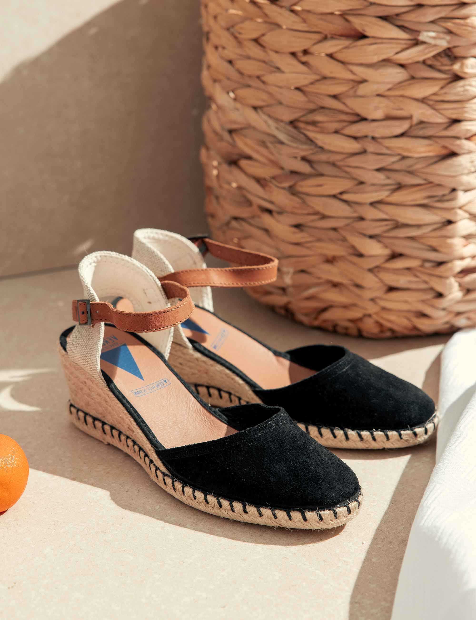 Schwarze Espadrilles mit Keil Malena Serraje. Hergestellt aus Wildleder, Lederfutter und -sohle, Jute und Gummisohle. Höhe des Keils 5,5 cm. Hergestellt in Spanien. Malena ist der kultige Keil von Verbenas. Seine Jute-Naht und sein Keil verbinden sich mit den Wurzeln des Meeres und des Landes, während sein natürliches Material das Erbe der Handwerker ehrt. Das Modell Malena versetzt Sie mit jedem Schritt in laue Sommerabende, in denen Moderne und Tradition aufeinandertreffen.