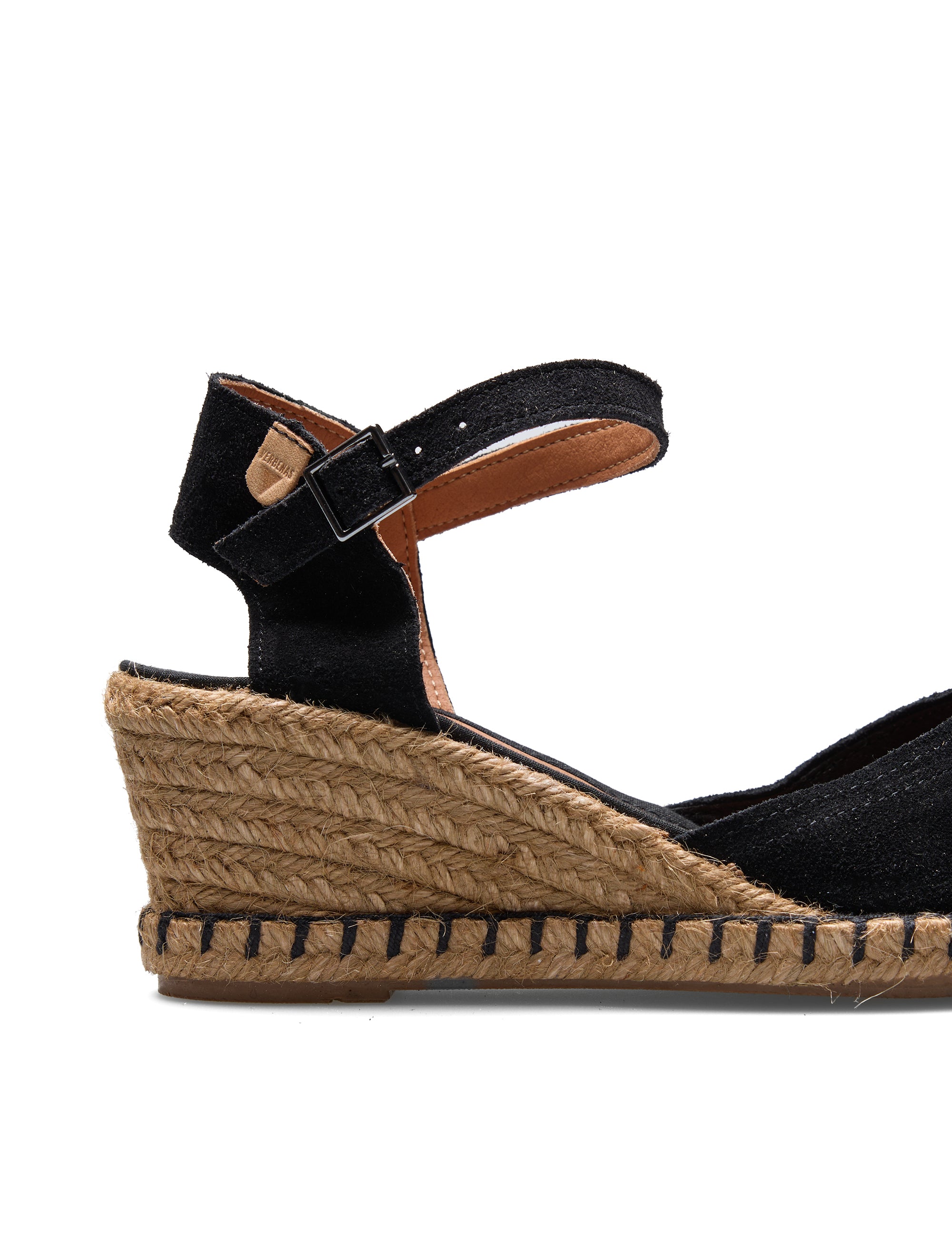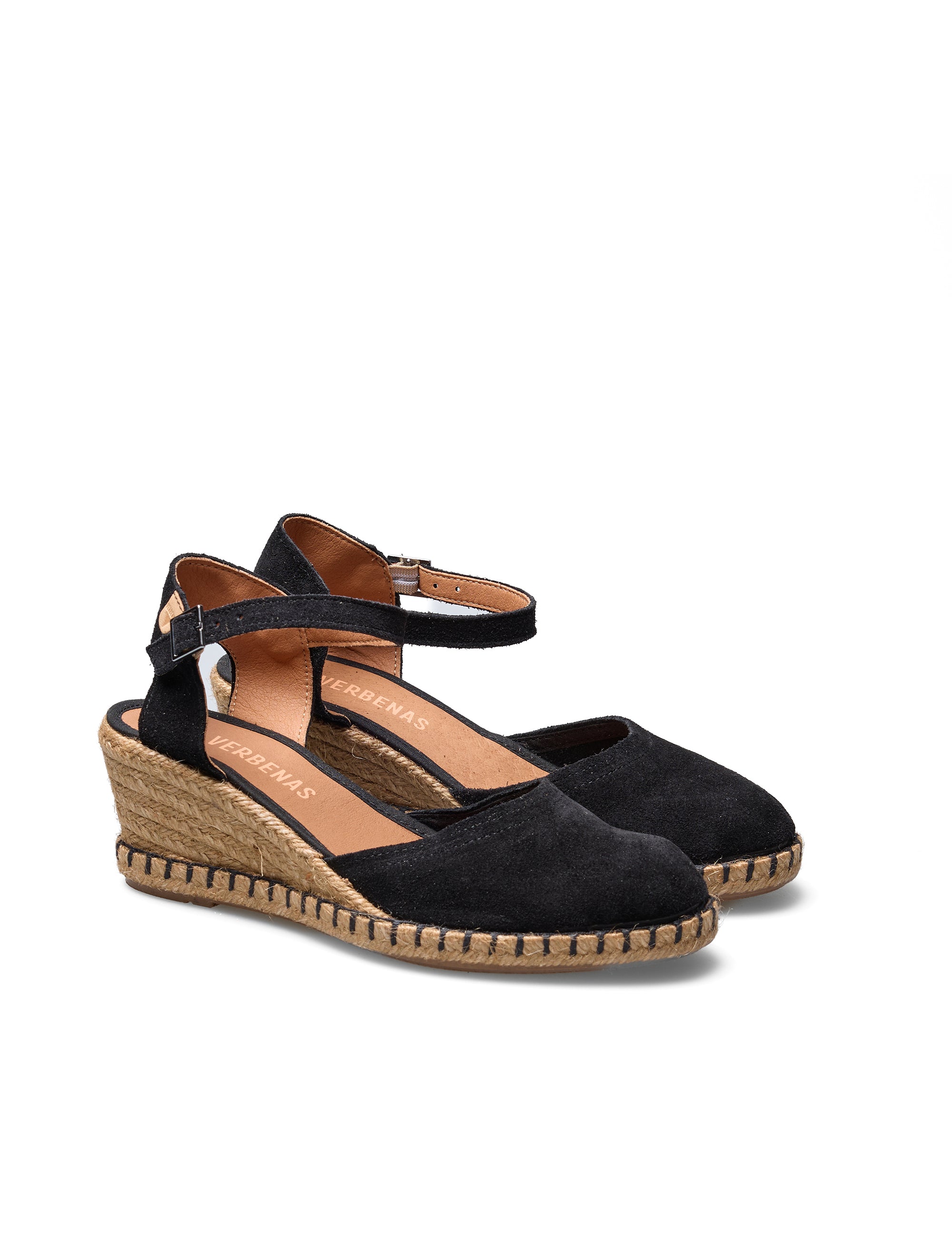 Schwarze Espadrilles mit Keil Malena Serraje. Hergestellt aus Wildleder, Lederfutter und -sohle, Jute und Gummisohle. Höhe des Keils 5,5 cm. Hergestellt in Spanien. Malena ist der kultige Keil von Verbenas. Seine Jute-Naht und sein Keil verbinden sich mit den Wurzeln des Meeres und des Landes, während sein natürliches Material das Erbe der Handwerker ehrt. Das Modell Malena versetzt Sie mit jedem Schritt in laue Sommerabende, in denen Moderne und Tradition aufeinandertreffen.