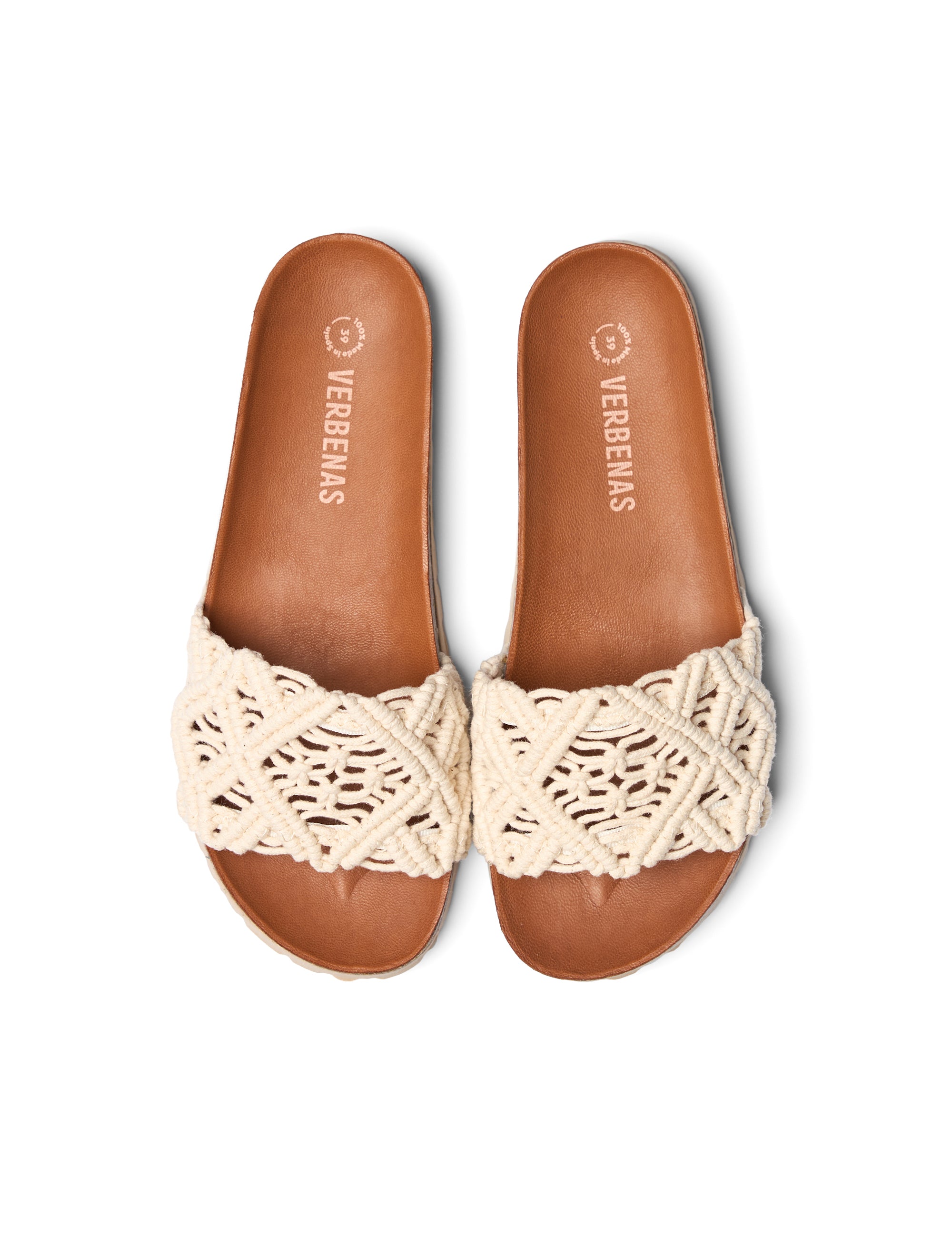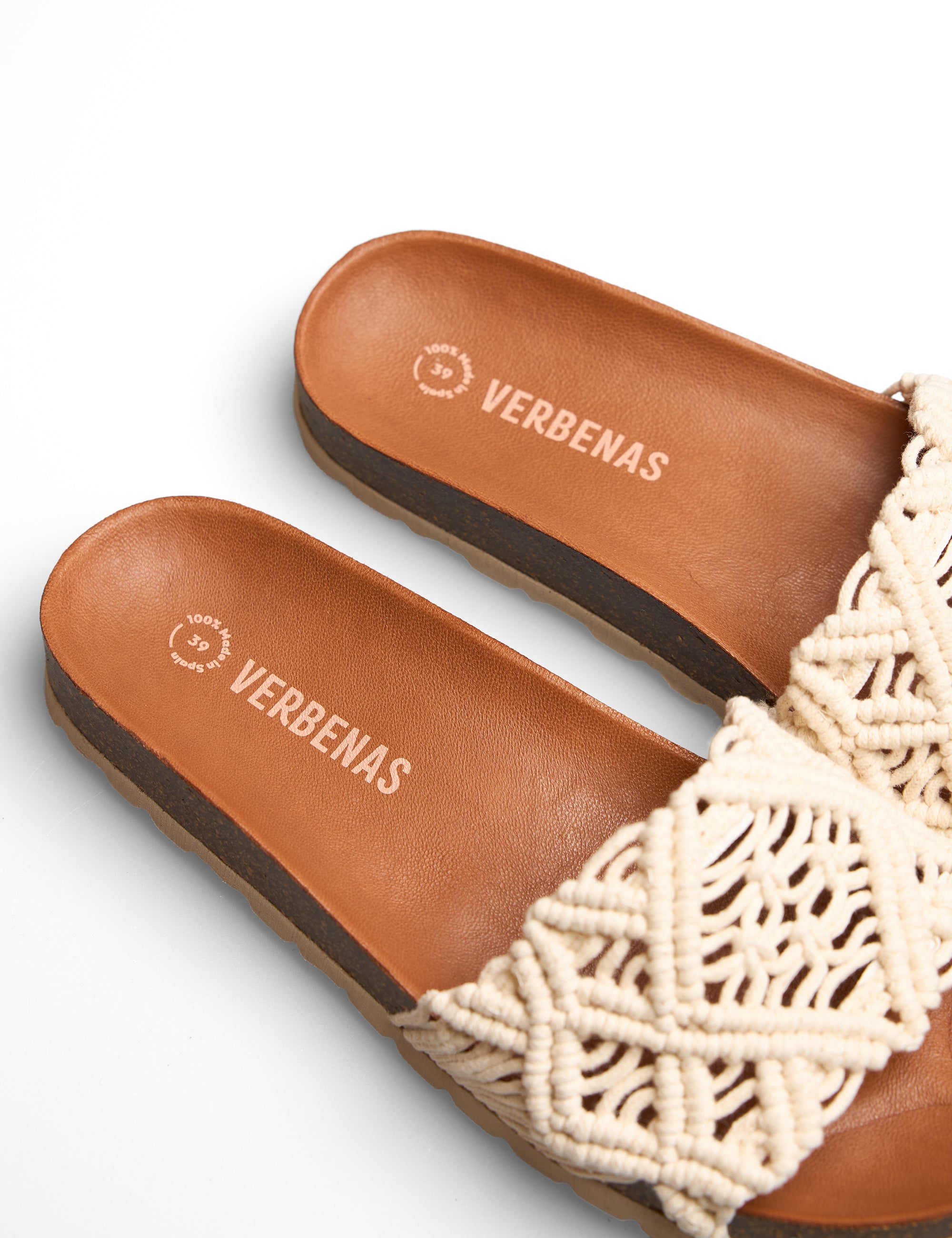Raga Knots Sandalen in Ecru. Hergestellt aus Textilmaterial, Lederfutter und -sohle und Gummi- und Korksohle. Hergestellt in Spanien.Ideal, um Sie vom Trubel der Stadt zu den entspanntesten Momenten am Meer zu begleitenam Meer oder zu einem sommerlichen Aperitif.