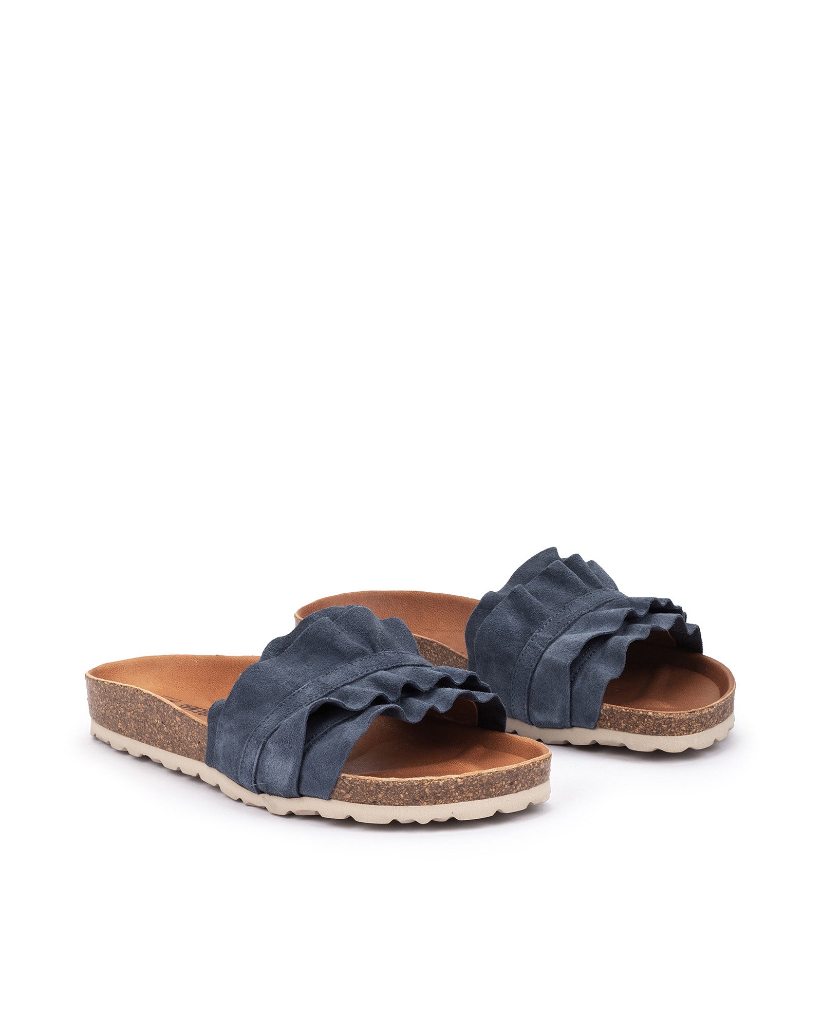 Rocio Serraje Volante Sandalen in der Farbe Iris. Hergestellt aus Wildleder, Futter und Sohle aus Leder und Sohle aus Gummi und Kork. Hergestellt in Spanien.Rocio ist die Ikone unserer Sandalenfamilie, ein Stück, das die Essenz von Verbenas mit einem einfachen, aber charaktervollen Design repräsentiert. Inspiriert von zeitgenössischen Trends, zeichnet sich diese Sandale durch ihre doppelte Rüsche aus, ein Detail, das Bewegung, Frische und einen einzigartigen Stil mit sich bringt, der nicht unbemerkt bleibt.