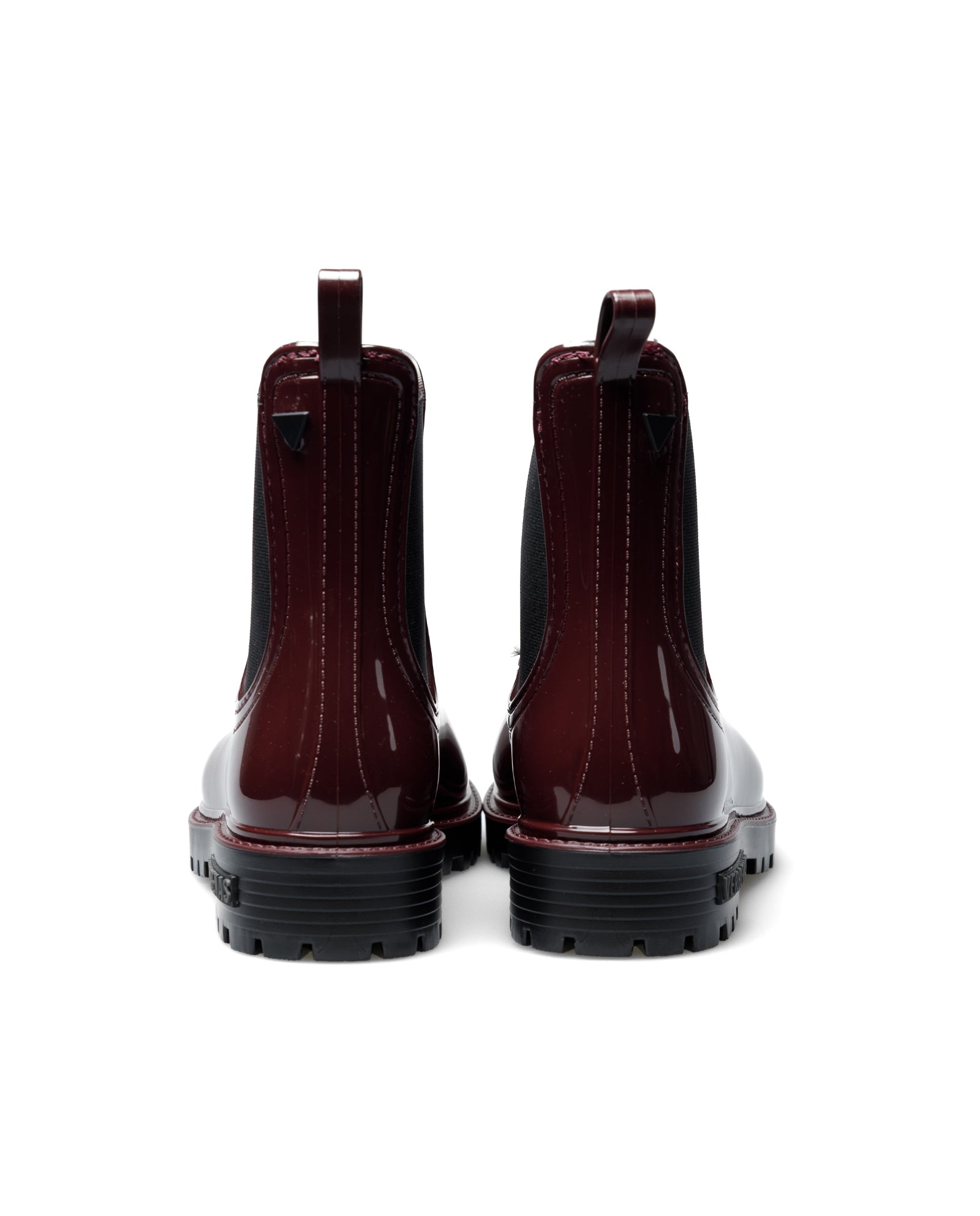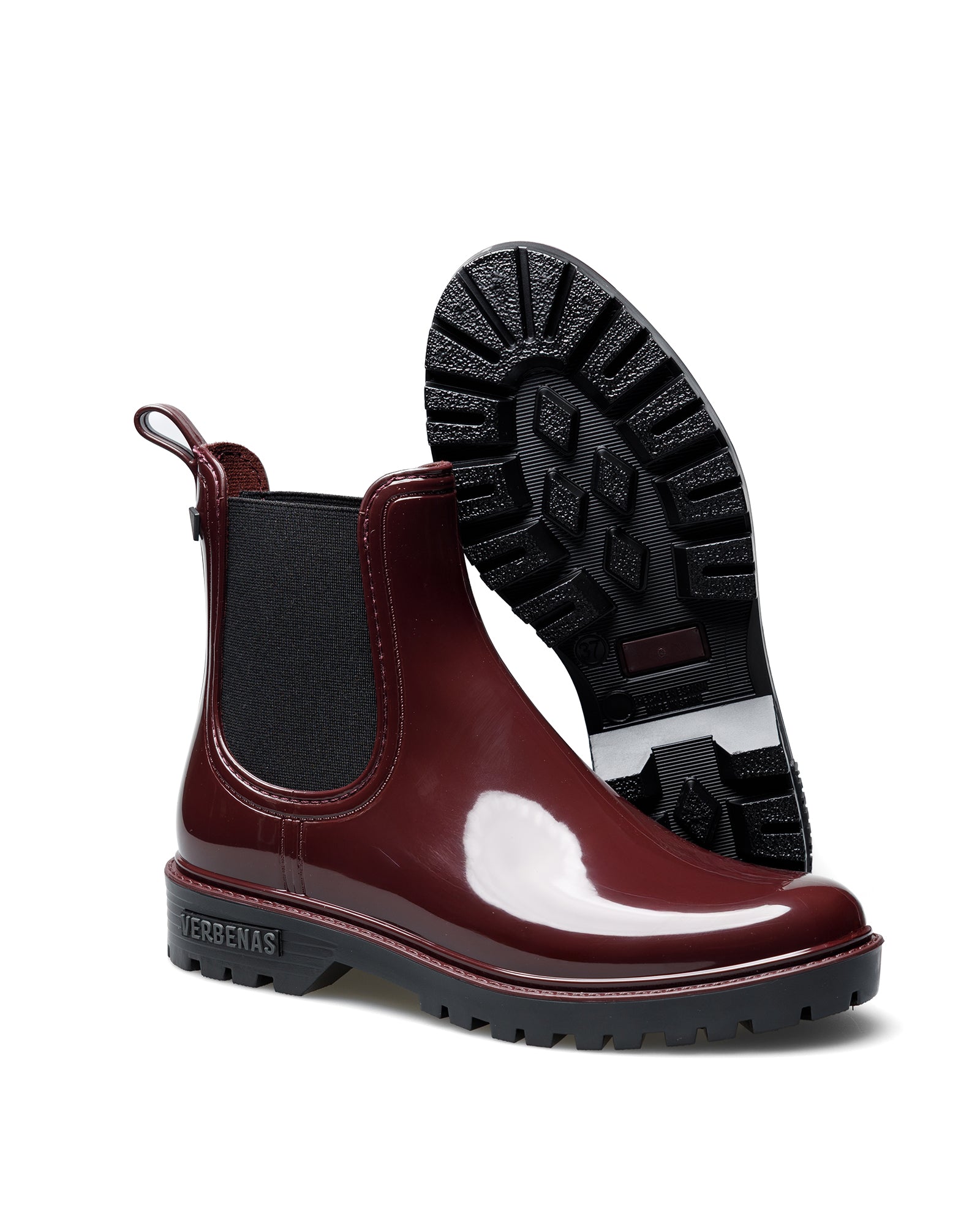 Gaudí Brillo waterproof boots in burgundy. Made with synthetic upper, textile lining and sole, and rubber sole. Boot shaft height: 14 cm. GAUDI Brillo adds that irresistible glossy finish that evokes the glamour of the 70s, turning any grey day into an opportunity to stand out. The glossy finish adds a chic and daring touch. A basic transformed into a piece with its own style.