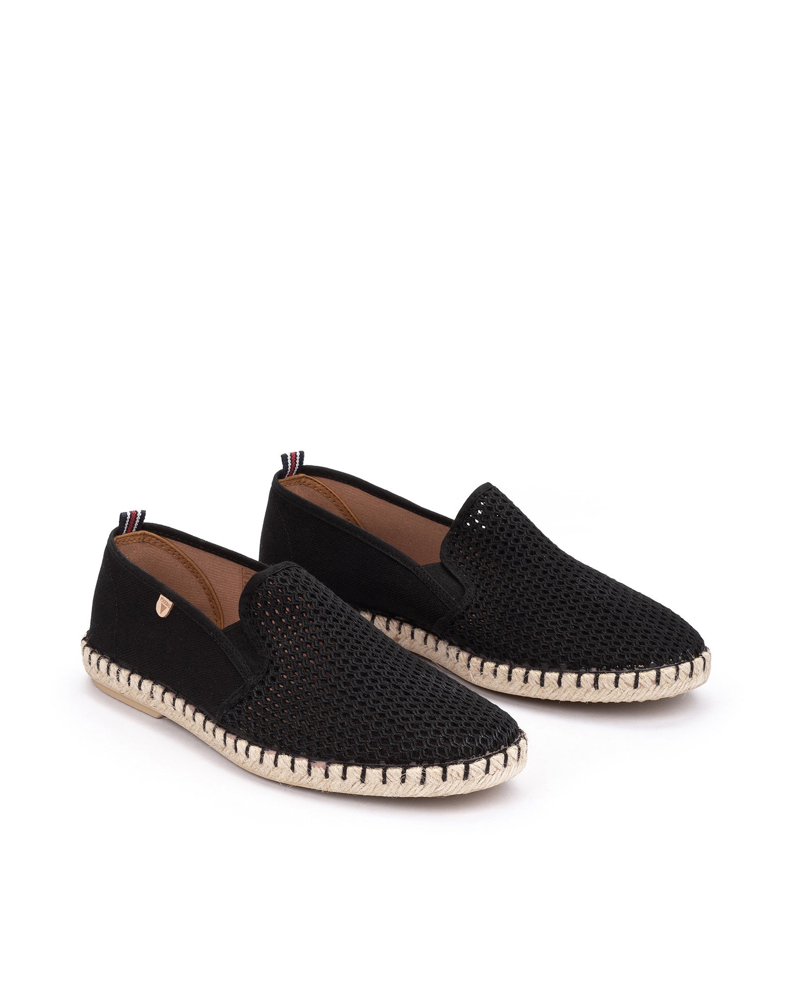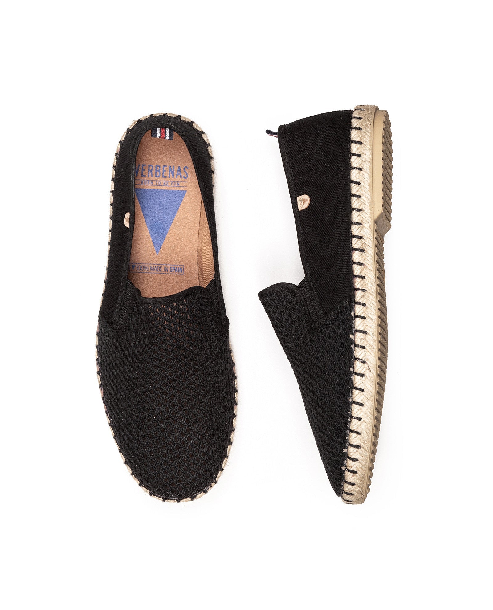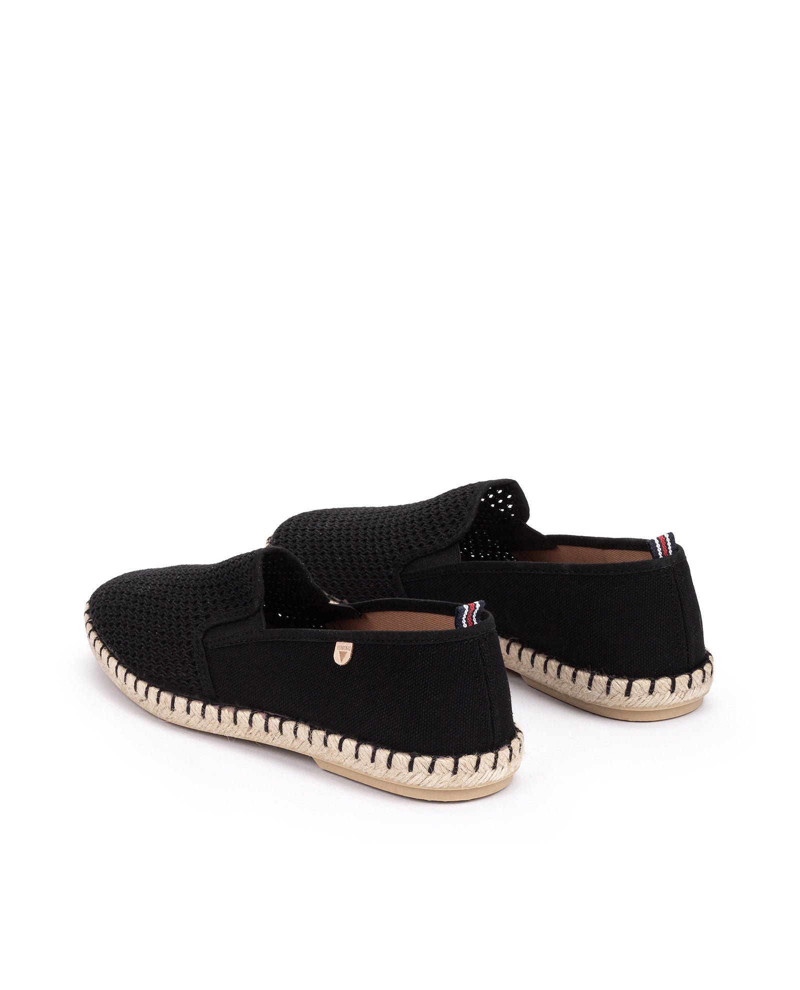Tom Rejilla-Paris espadrilles in black. Made in Spain with fabric and cotton material, leather lining and sole and jute and rubber sole. It has two side elastics that facilitate the fit.Espadrilles that not only pay homage to tradition, but also adapt to the modern lifestyle, bringing unrivalled comfort and a touch of sophistication. With Tom, every step is a style statement that reflects the freshness of the Mediterranean and the timeless spirit of Verbenas.