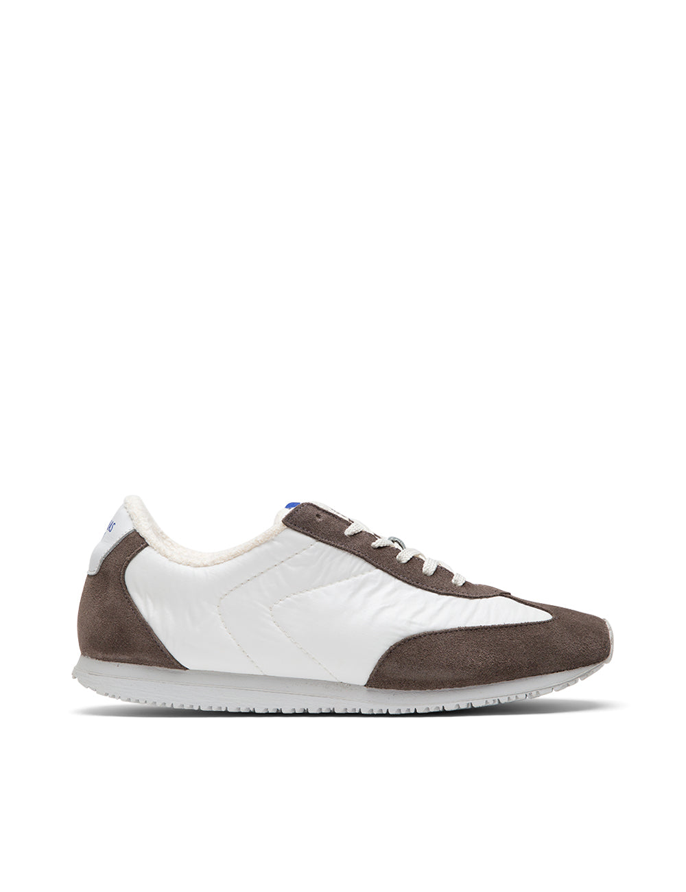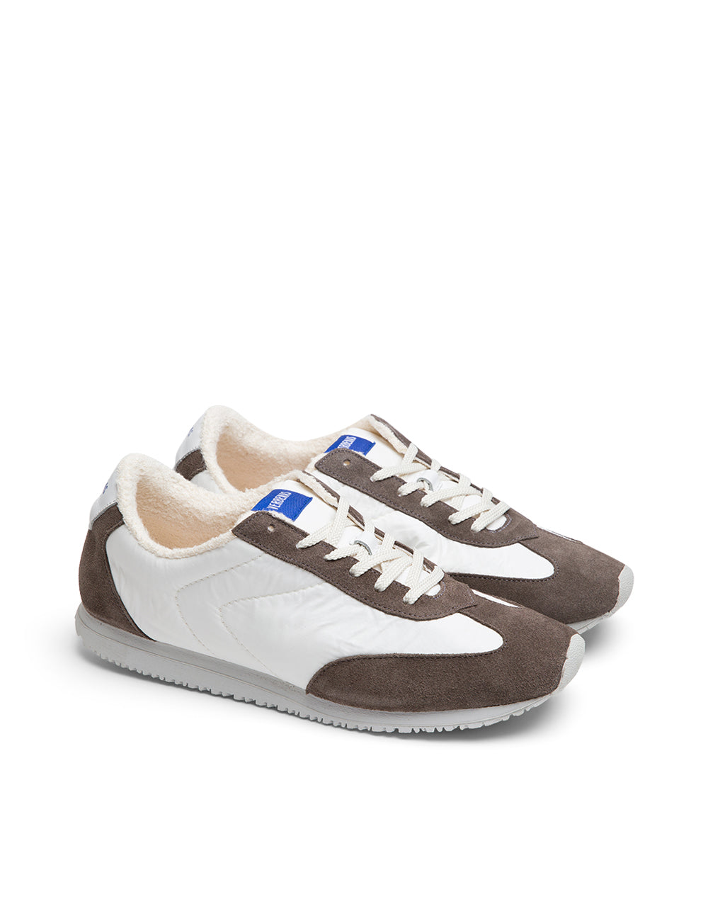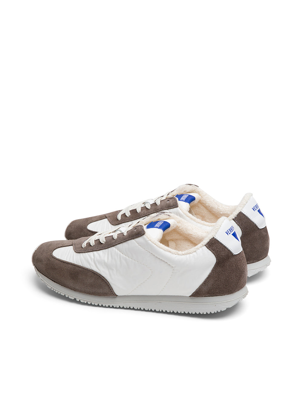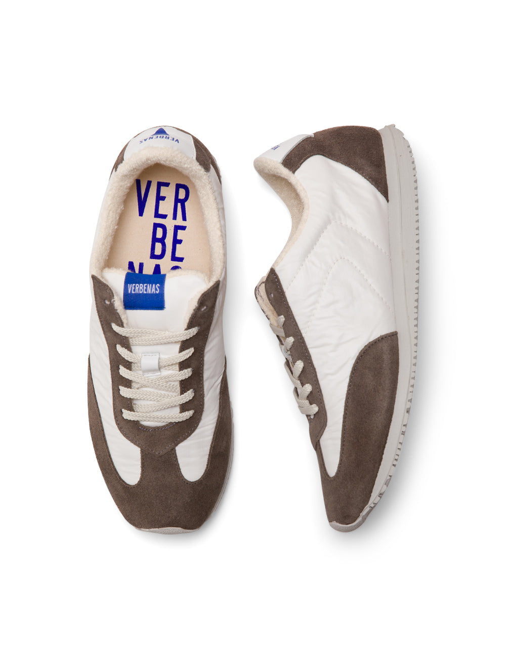 Seven Ripstop/Suede Sneakers in White/Ash. Made with nylon material combined with suede, they have a bamboo fibre terry lining, a breathable, flexible and comfortable sole that absorbs the footprint and a natural rubber sole. Our Seven sneaker collection pays homage to the iconicity of the seventies. The fusion of modern elements and retro silhouettes make our Seven a must-have. Each pair is an expression of timeless sophistication and urban style, from its retro detailing to its bold design, each piece evokes authenticity.