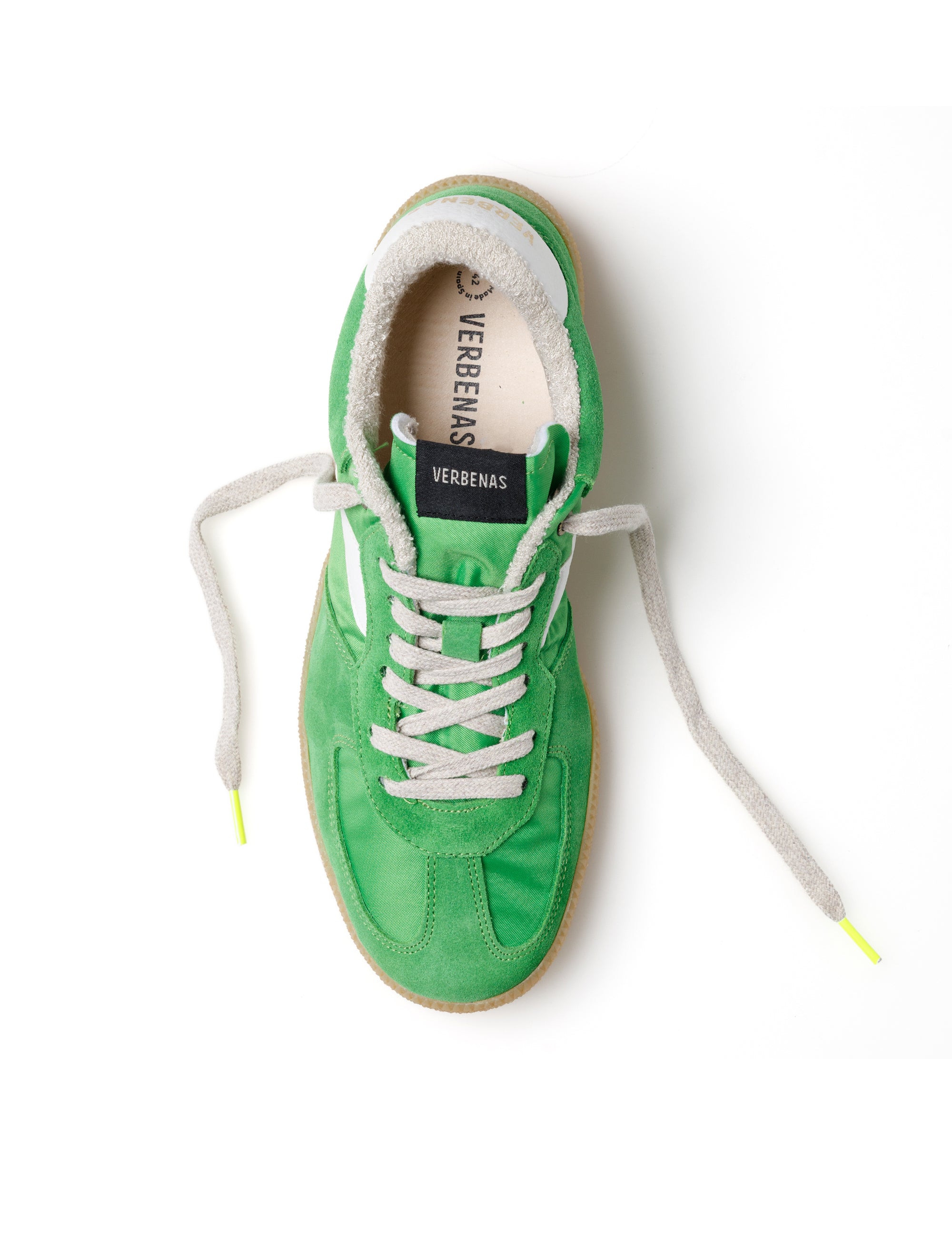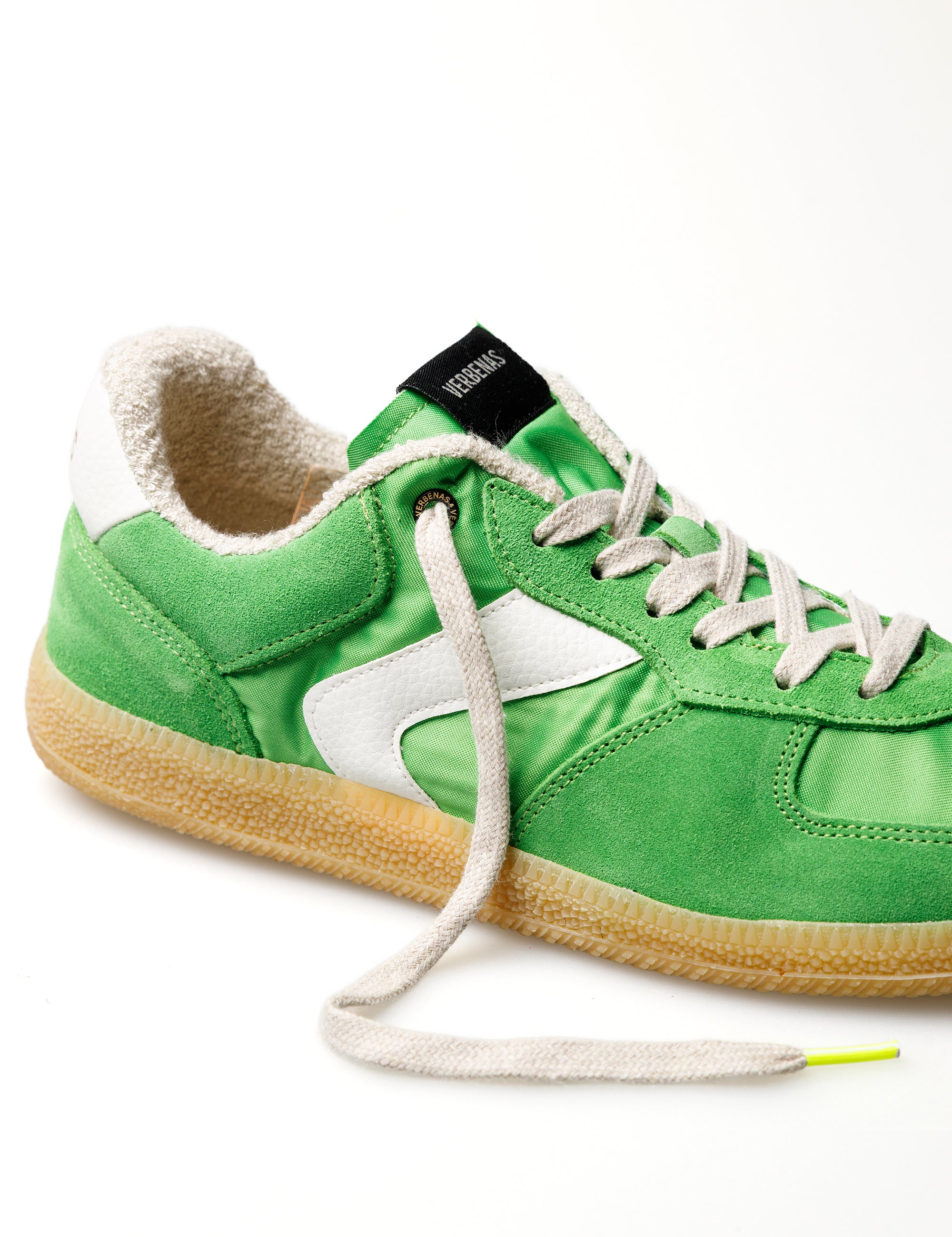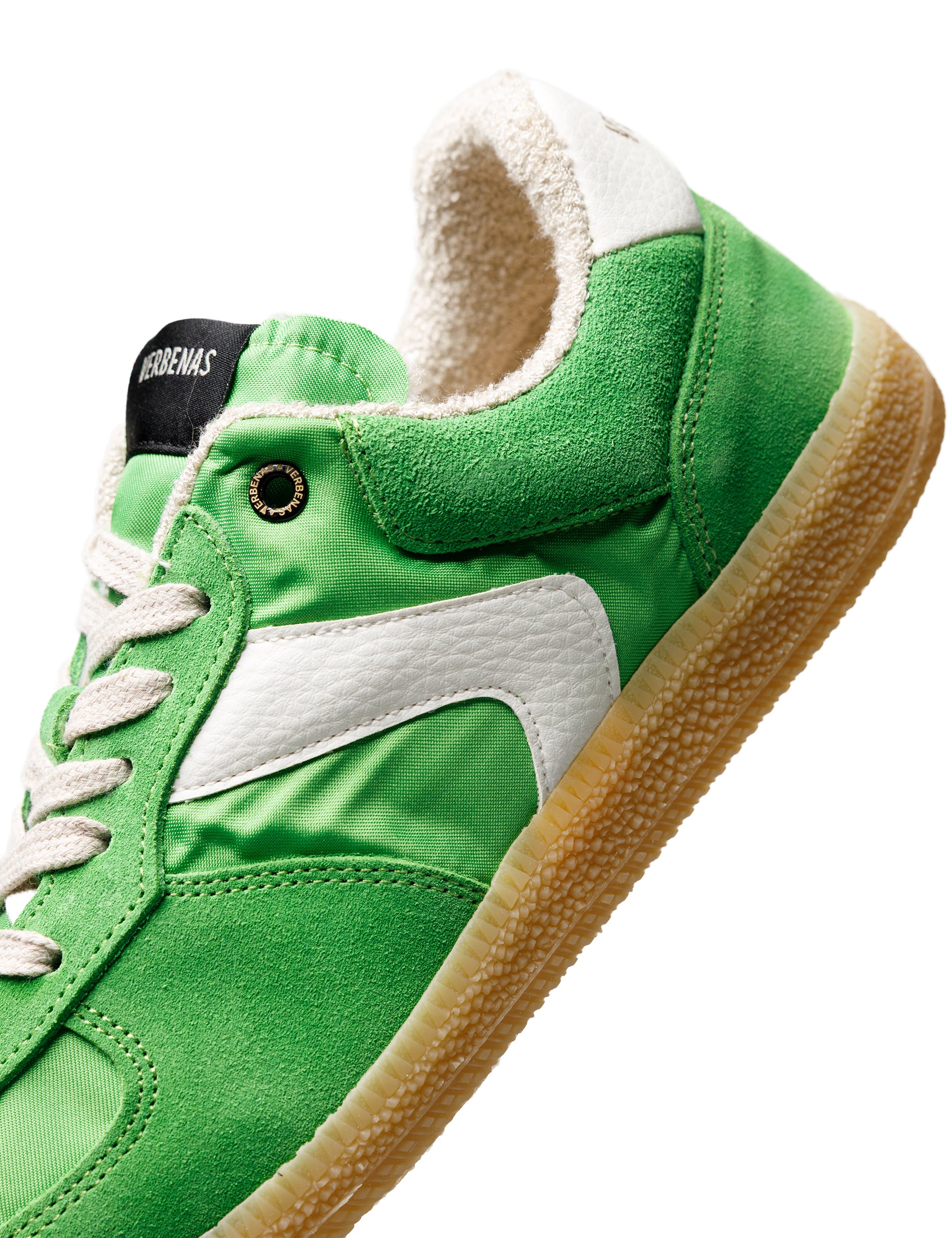 Sneakers Soro Nylon/Suede in Garden/Garden colour. Made with Nylon material combined with suede. They have a terry lining with bamboo fibre, a breathable, flexible and comfortable sole that absorbs footfall and a natural rubber sole.We present our collection of Soro sneakers, a retro-style icon. Finished in Textile, Nylon and Split leather, each design conveys authenticity and timeless style. Explore the urban spirit and celebrate retro and modern style with every step you take.