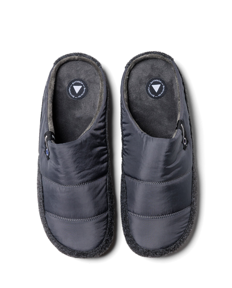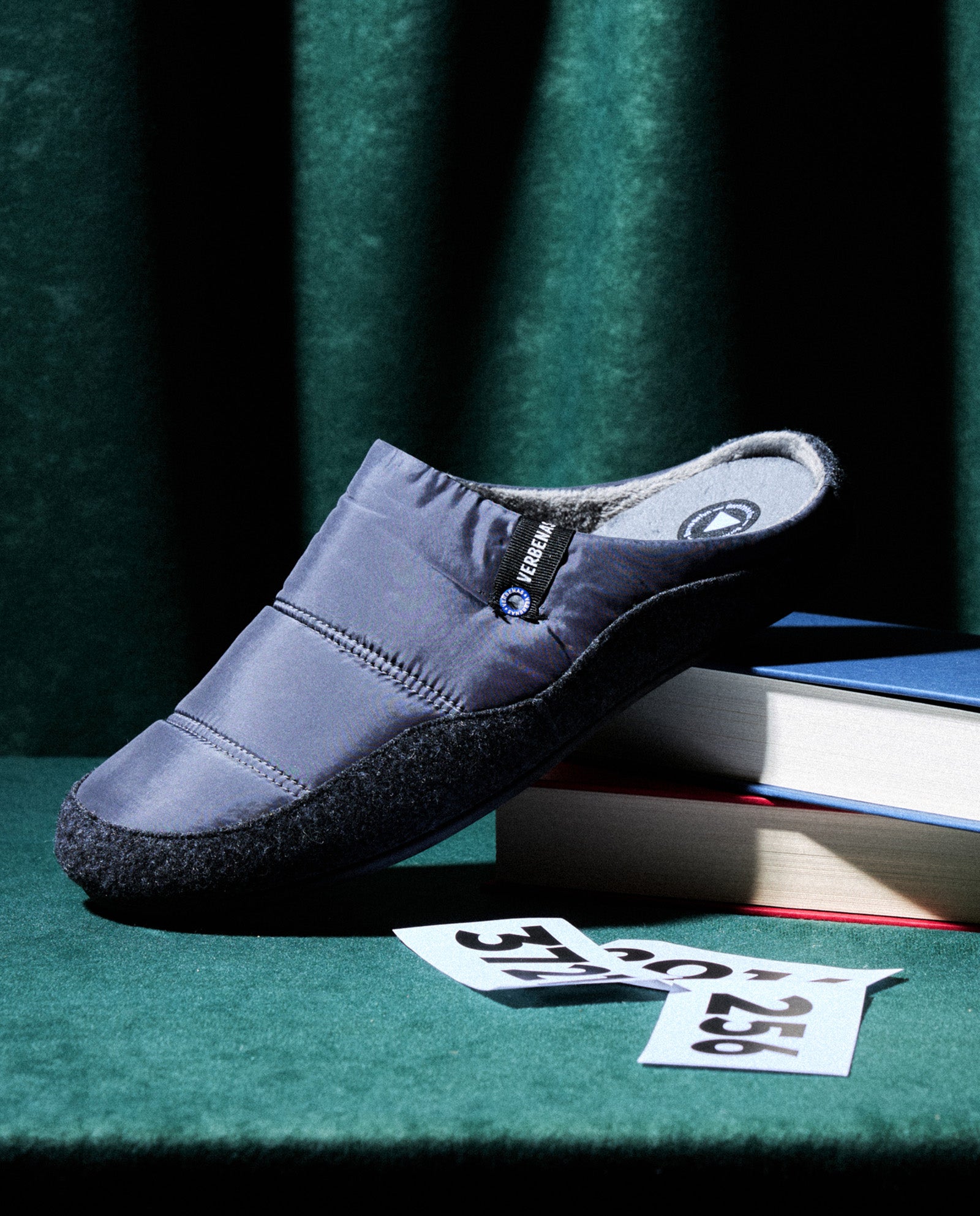 Earth Quilted Spikes slippers in Anthracite. Made with PES and polyester material, 100% PES lining and insole and 100% rubber sole. Made in Spain. They feature a padded exterior and a fur lining inside. Our Earth collection is inspired by the classic clog with a fun, youthful twist. For those seeking the ultimate in comfort, Earth offers style and ease of wear. Imagine yourself lounging at home, enjoying the modern look of Earth, a slipper that effortlessly combines fashion and function.