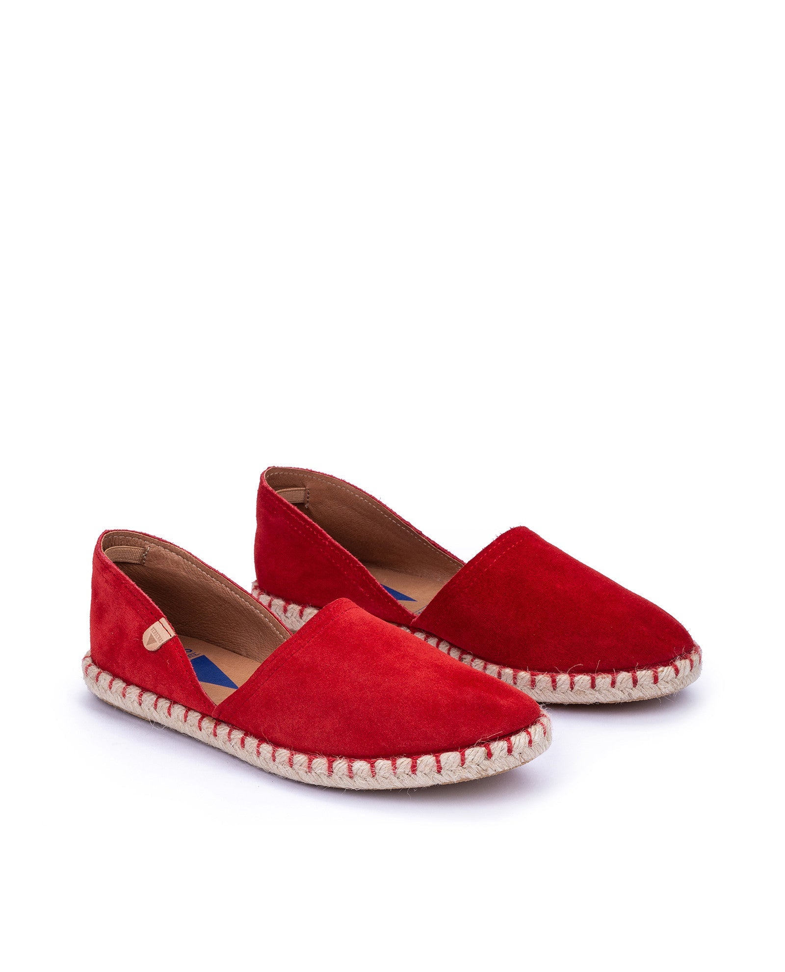 Carmen Serraje flat espadrilles in Fuego colour. Made with suede material, leather lining and sole and jute and rubber sole. Made in Spain. Carmen is the icon of Verbenas, an espadrille that transcends time and seasons. With an exclusive design that fuses tradition with modernity, this model adapts to both the city and the coast, making it the perfect shoe for any occasion. Inspired by Spanish roots, its name evokes the festivity of the Virgen del Carmen and the summer verbenas.