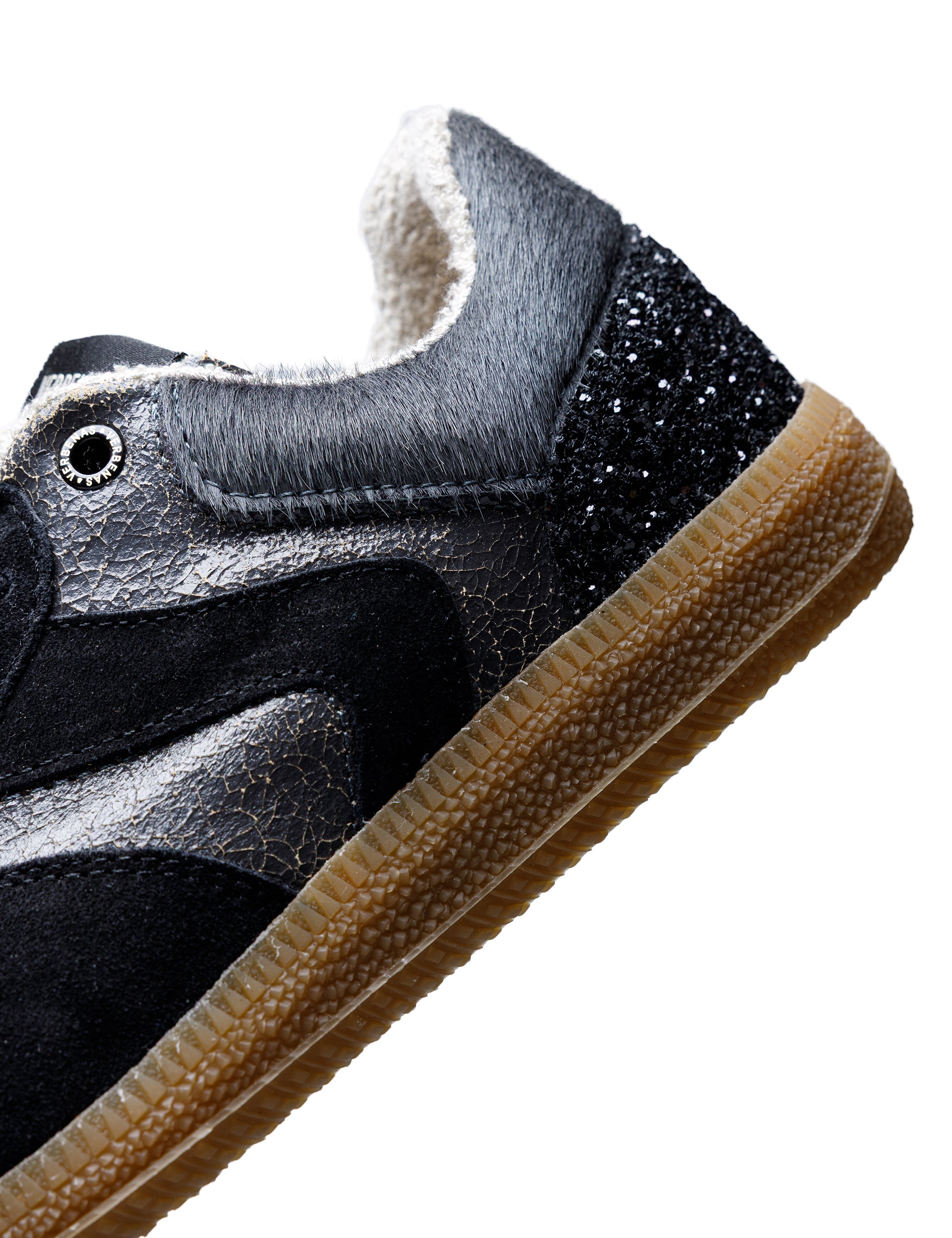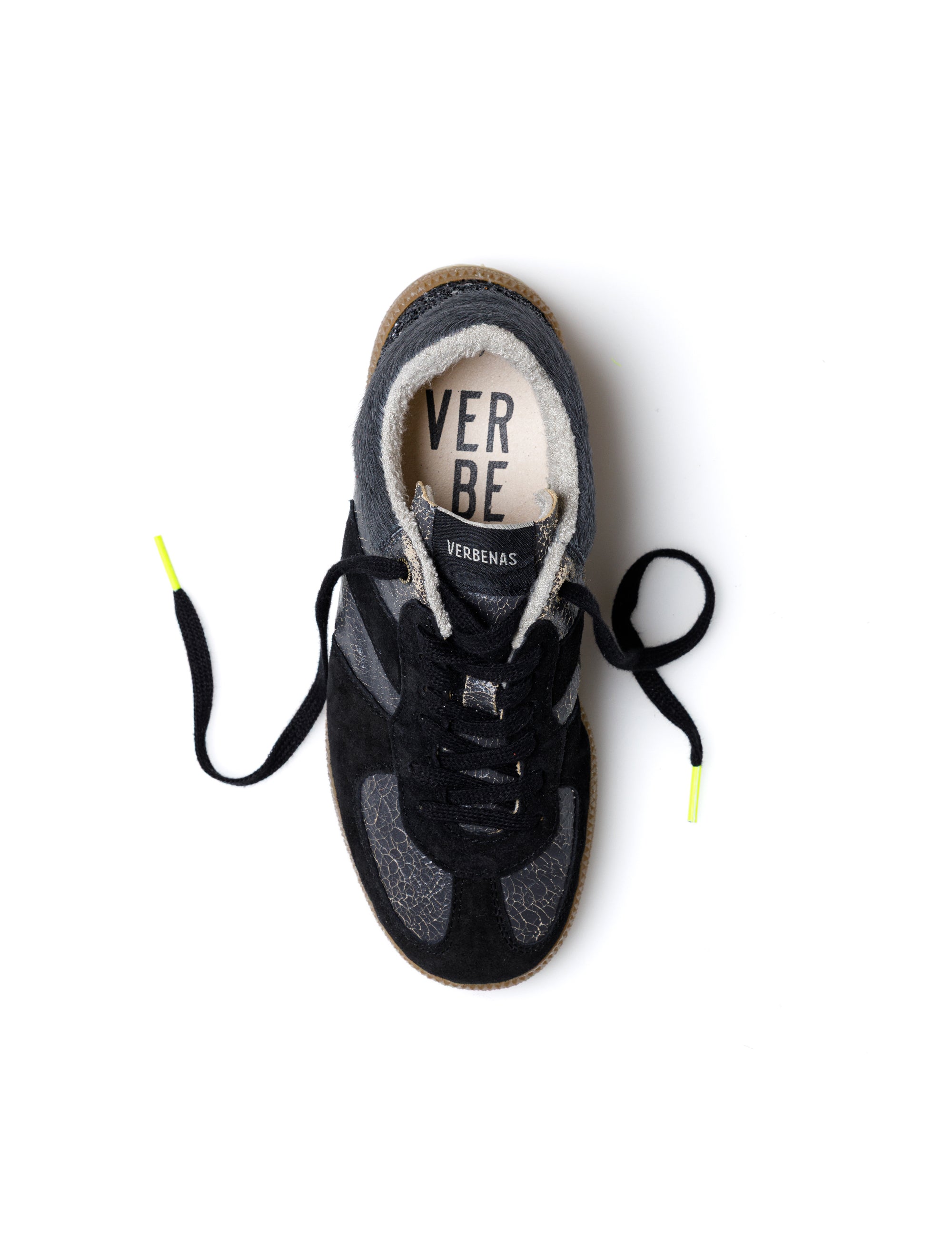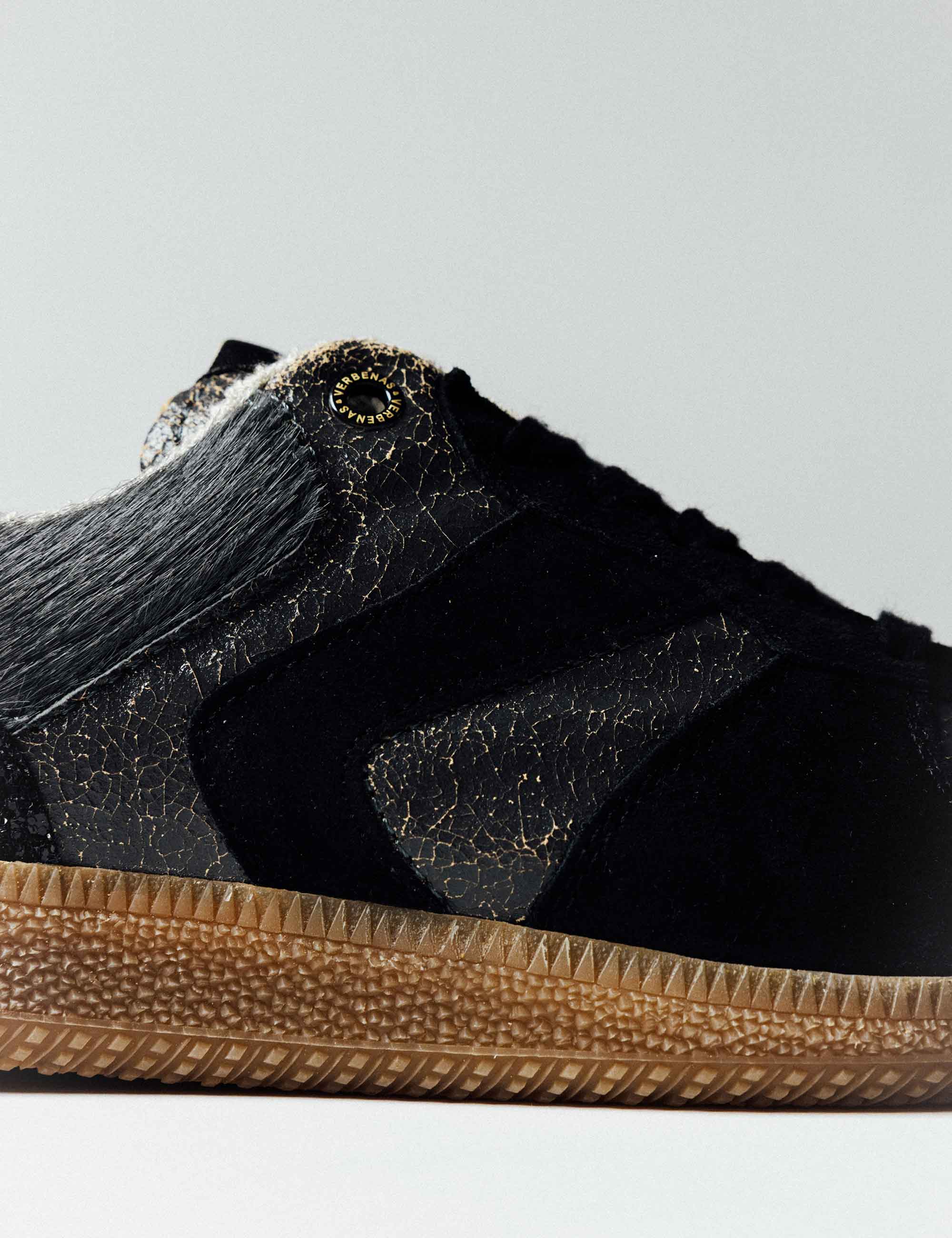 Sora Fantasy sneakers in Lead/Black/Anthracite. Made of suede material with a laminated finish combined with suede, glitter and pony hair, they have a bamboo fibre terry lining, a breathable, flexible and comfortable insole that absorbs the tread and a natural rubber sole. Introducing our Sora sneaker collection, a true retro-style icon. With iconic details and bold shapes, each design exudes authenticity and timeless style. Explore the urban spirit and celebrate retro style with every step.