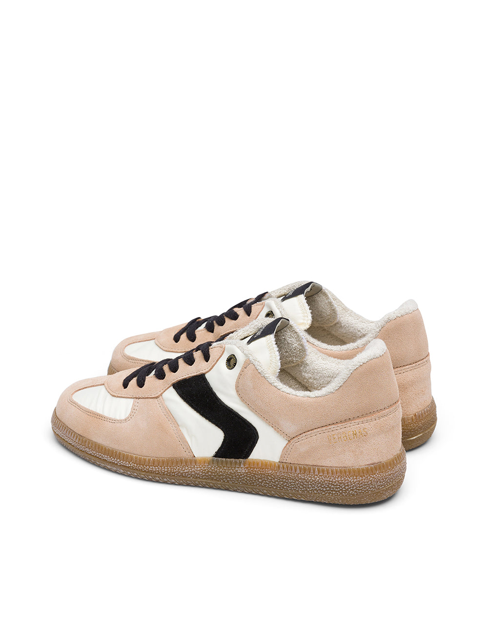 Sneakers Sora Nylon/Suede di colore crema/crudo. Realizzate con materiale in nylon combinato con pelle scamosciata. hanno una fodera in spugna di fibra di bambù. suola traspirante, flessibile e confortevole che assorbe l'impronta e suola in gomma naturale. Vi presentiamo la nostra collezione di sneaker Sora, un'icona dello stile rétro. Con dettagli iconici e forme audaci, ogni design trasmette autenticità e stile senza tempo. Esplorate lo spirito urbano e celebrate lo stile rétro a ogni passo.