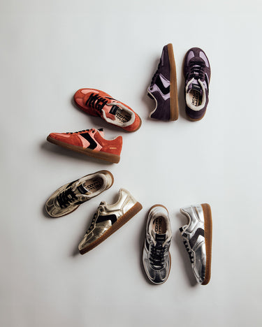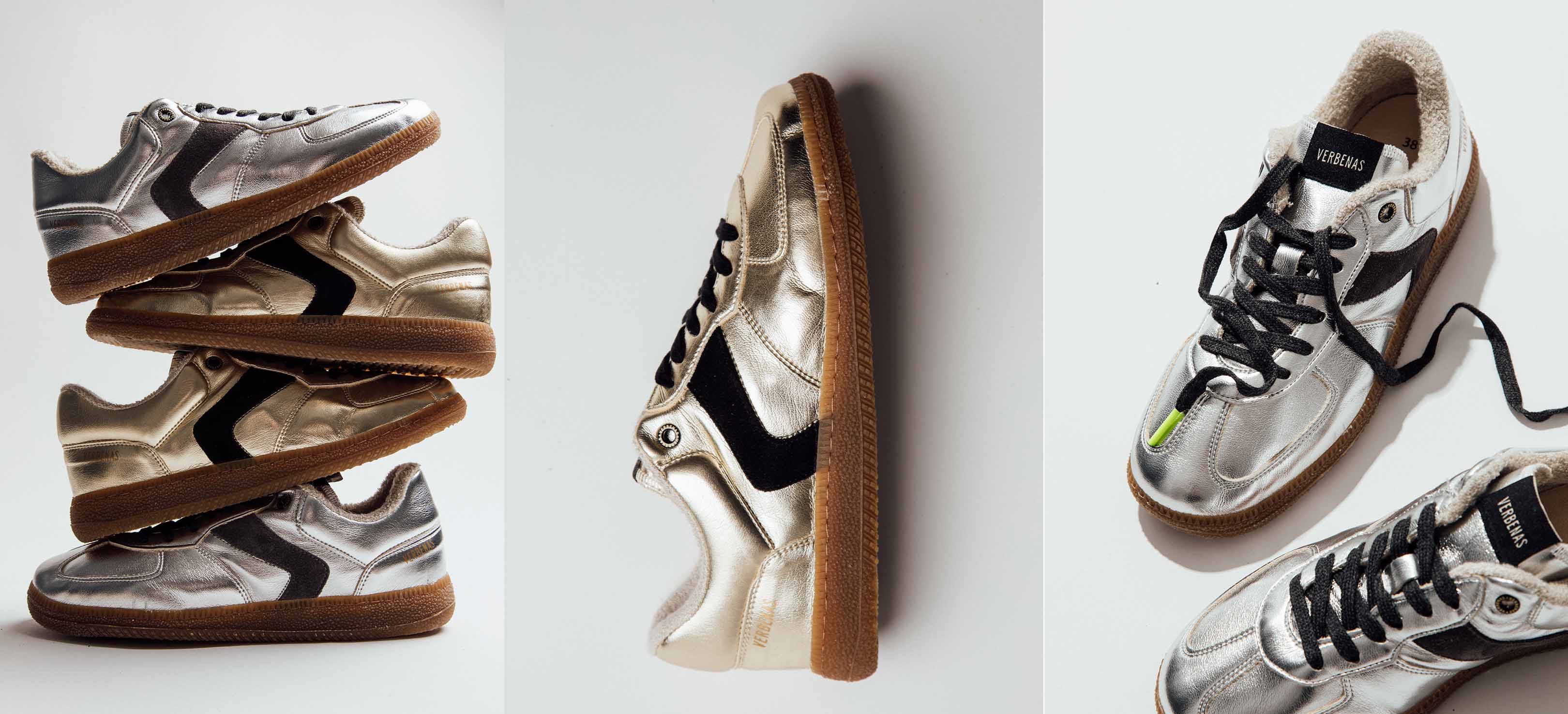 Si hay un material que sigue cobrando fuerza es el metalizado y en Verbenas no podemos resistirnos a incluirlo en nuestro calzado. Para ello tenemos una selección de sneakers metalizadas para que te unas a esta tendencia. Combínalo con unos tejanos, una camiseta blanca básica y tu blazer favorita.