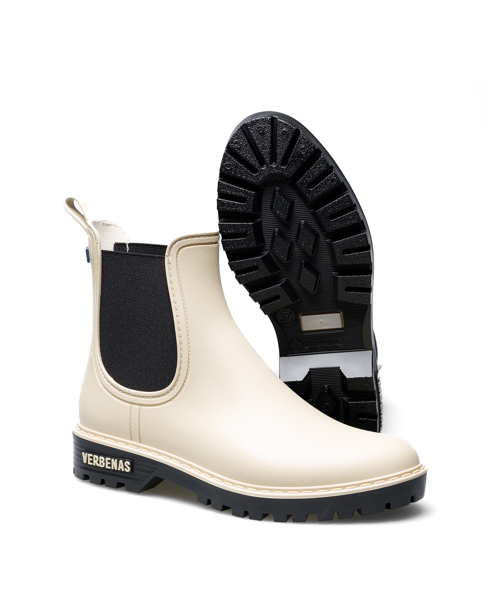 Bota de Agua Gaudí Mate en color Crudo-Negro. Confeccionadas con corte sintético, forro y planta textil y suela de goma. Altura caña de la bota: 14 cm. Fabricadas en España. Destacan sus combinaciones de colores y piso al tono. Nuestra colección Gaudí está inspirada en la forma clásica de la bota Chelsea, con un toque más urbano londinense. Cada bota es una expresión de sofisticación atemporal y estilo urbano. Desde sus detalles icónicos hasta su atrevido diseño, cada pieza evoca autenticidad. Únete a nosotros a explorar el encanto de lo clásico con un toque moderno,haciendo de Gaudí una declaración de estilo a cada paso.