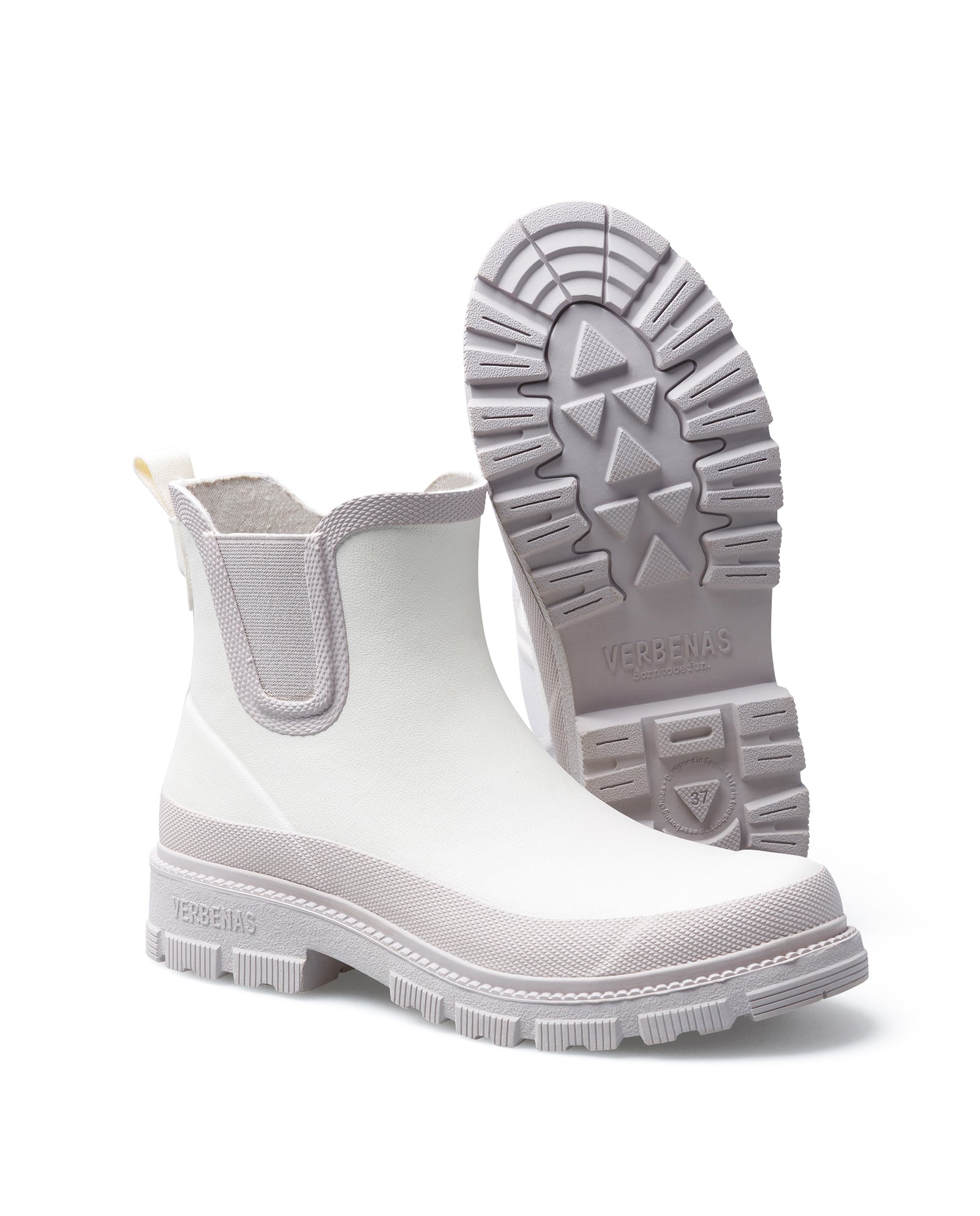 Galochas Lua Mate Combi Off White Greige Fabricadas em borracha natural, elástico cinzento e sola em EVA. Altura da cana da bota: 12,5 cm. Com o seu estilo Chelsea e sola track, LUA combina espírito clássico e ar inovador. Ideal para quem não passa despercebido.