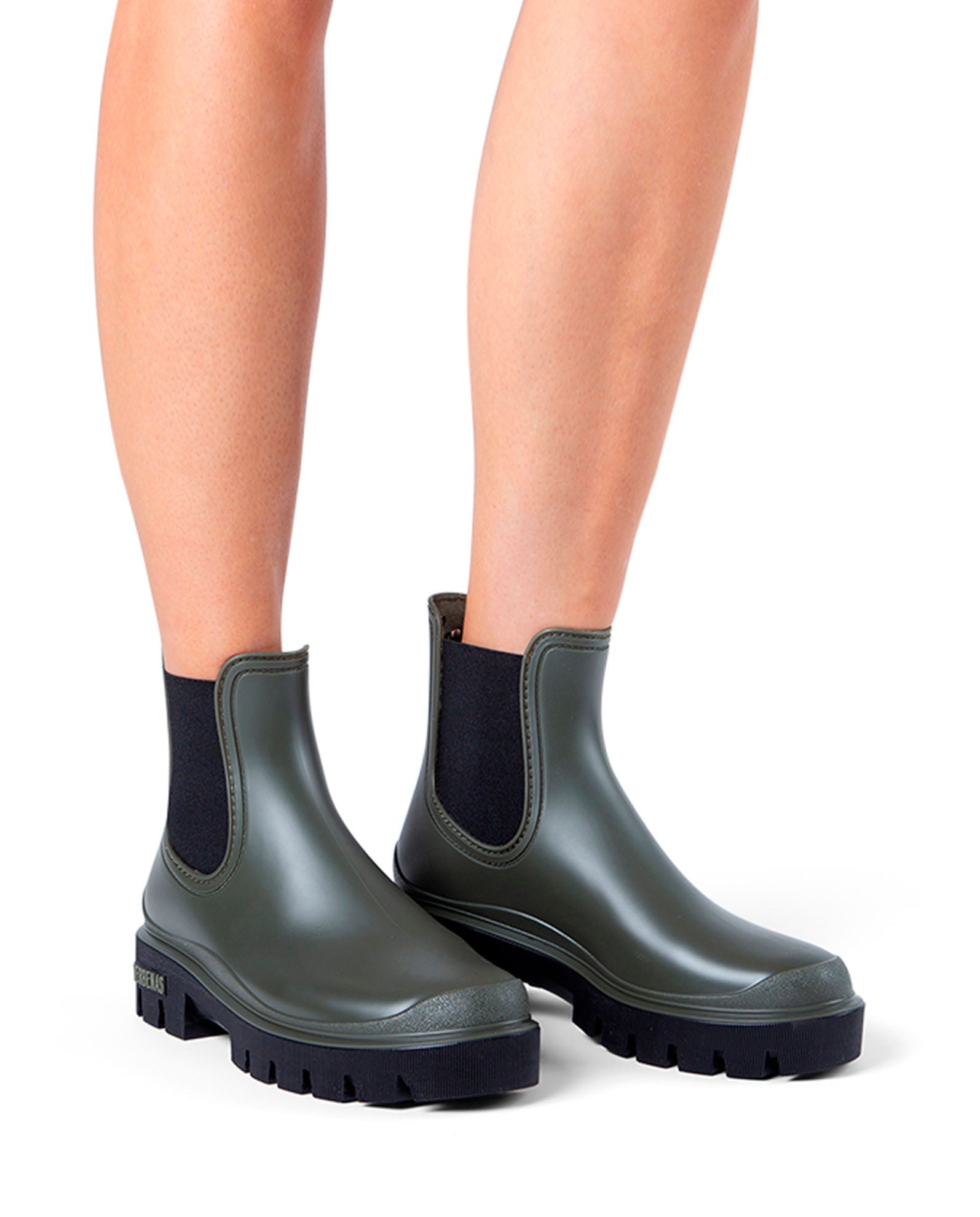 Galochas Mae Mate na cor cáqui-preto. Confeccionadas com corte sintético. Forro e palmilha em tecido e sola em borracha. Altura da cana da bota: 14,5 cm. Destaca-se a sua sola track e forma larga. Inspirada no estilo urbano mais ousado, a linha MAE parte da essência da GAUDI e leva-a ao próximo nível. Com uma sola track mais ousada, uma forma mais larga e uma silhueta com mais presença, estas botas combinam impacto visual com conforto sem concessões. São a escolha perfeita para quem caminha com segurança, valoriza a funcionalidade sem renunciar ao estilo e entende a cidade como o seu próprio terreno de jogo.